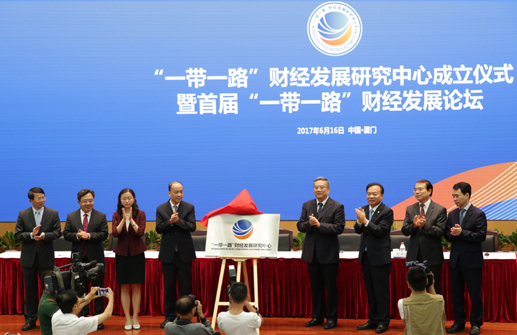 财政部部长助理赵鸣骥在成立仪式上发表讲话,他指出:习近平总书记在“一带一路”国际合作高峰论坛开幕式主旨演讲中倡议成立“一带一路”财经发展研究中心。为落实这一重要成果,财政部党组研究决定,将“一带一路”财经发展研究中心设在厦门国家会计学院。建设“一带一路”,是以习近平同志为核心的党中央,审时度势,高瞻远瞩,科学统筹国内国际两个大局做出的重大战略决策。四年来,“一带一路”已经从理念转化为行动,从愿景转变为现实,结出累累硕果。在此过程中,财政部深度参与,稳步推进相关工作,从政策和资金两个方面推动“一带一路”建设,取得了积极成效。下一步,财政部将紧紧围绕政策沟通、设施联通、贸易畅通、资金融通、民心相通这“五通”,更好发挥职能作用,推动“一带一路”建设行稳致远,迈向更加美好的未来。