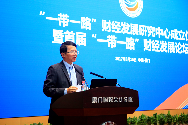 厦门市委常委、厦门市政府常务副市长黄强在讲话中表示:厦门历史上就是海上丝绸之路的重要起点和五口通商口岸之一,在国家战略中扮演着重要角色。近年来,厦门市先后被赋予综改实验区、自贸实验区、自主创新示范区、海丝战略发展支点城市、对台战略支点城市、国际性综合交通枢纽城市等改革先行城市,在“一带一路”战略中的地位和作用日益凸显。肩负着传承丝路精神、服务“一带一路”神圣使命的财经发展研究中心落地厦门,既是对厦门国家会计学院的信任,也是对厦门战略定位的认可,我们一定在财政部的领导下与厦门国家会计学院共同携手,为办好“一带一路”财经发展研究中心做出最大的努力。