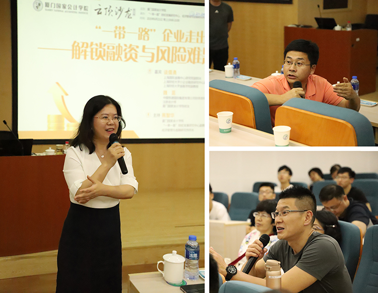 6月21日,由 “一带一路”财经发展研究中心、经济管理与金融研究所联合举办的第三十期厦门国家会计学院“云顶沙龙”顺利举行。本期沙龙以“‘一带一路’企业走出去:解锁融资与风险难题”为主题,上海国际金融中心研究院副院长、上海财经大学小企业融资研究中心副主任谈儒勇,中国铁建国际集团有限公司财务部经理、我院校友魏茁受邀作专题分享。“一带一路”财经发展研究中心副教授、经济管理与金融研究所所长陈智华主持本期沙龙。