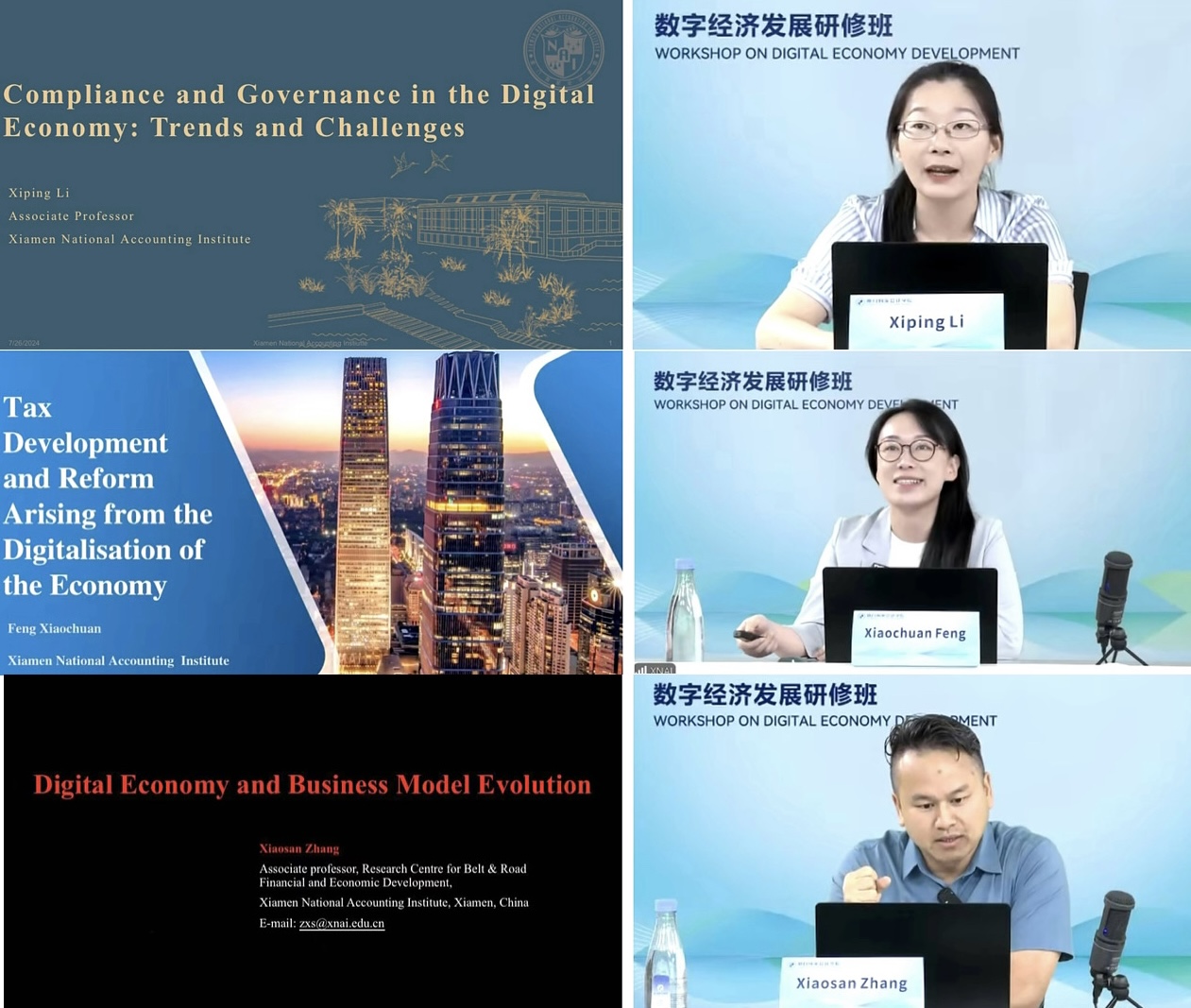 此次研修班期间,学院教研中心副教授李浠平、“一带一路”财经发展研究中心讲师冯小川、副教授张小三先后围绕数字经济背景下的合规治理、税收发展与变革及商业模式发展等议题作专题分享。来自尼泊尔、新西兰、巴基斯坦等国家的代表深入探讨了如何在数字经济中实现会计合规、优化企业商业模式及应用人工智能等问题,共同探寻发展数字经济的新途径。