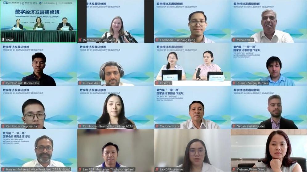 7月24日至26日,由财政部会计司、会计准则委员会、厦门国家会计学院主办,“一带一路”财经能力建设平台承办的“数字经济发展”研修班以视频研讨方式进行。作为第六届“一带一路”国家会计准则合作论坛的延伸活动,研修班汇聚了来自中国、老挝、尼泊尔、新西兰、巴基斯坦、俄罗斯、越南、柬埔寨及马尔代夫等国家会计准则制定机构代表。