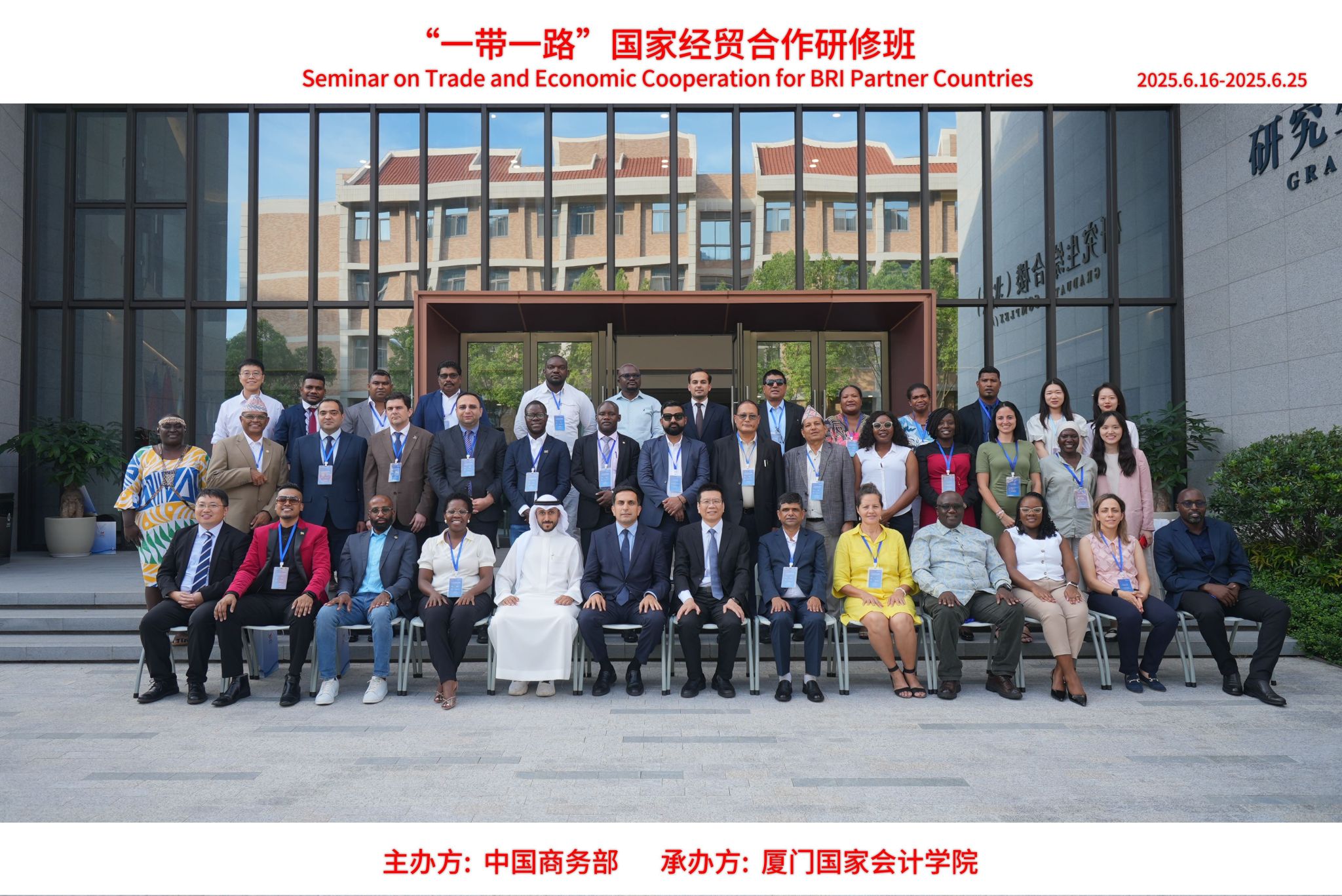 6月16日至25日,由商务部主办,厦门国家会计学院承办的“一带一路”国家经贸合作研修班圆满落幕。本次研修班共有来自阿塞拜疆、巴林、塞浦路斯、古巴、加蓬、圭亚那、尼泊尔、纳米比亚、南非、所罗门群岛、乌干达、赞比亚等12个国家的36位“一带一路”共建国经贸部委官员,高校专家及相关机构经贸领域从业人员参加。