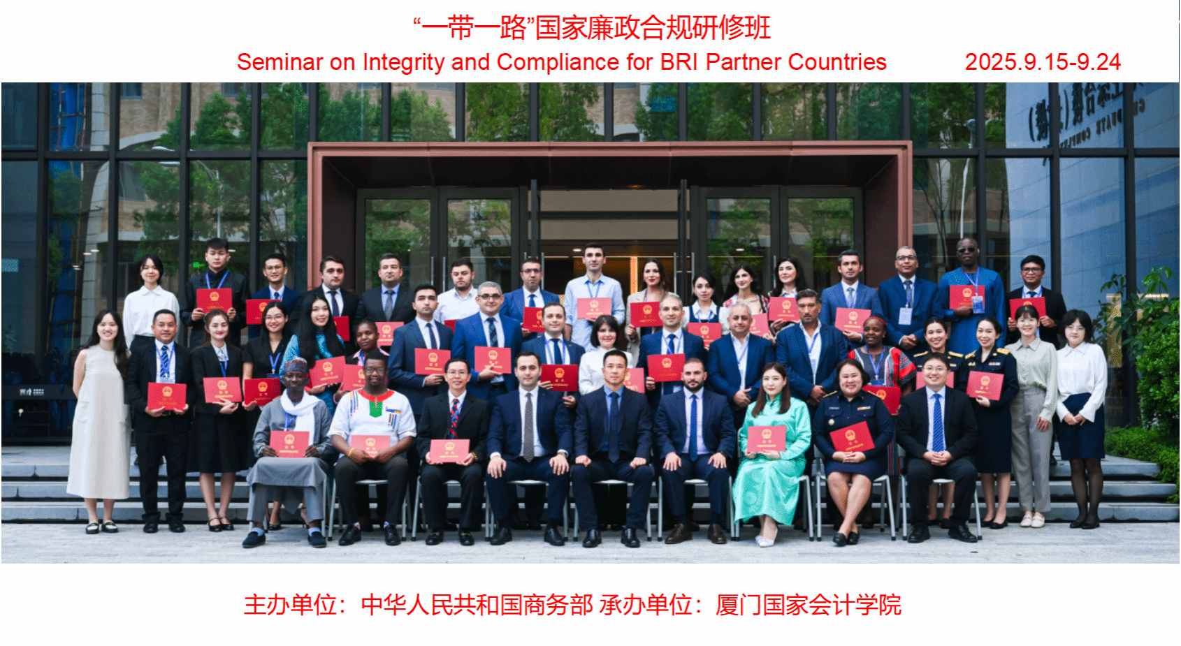 近日,由中国商务部主办,学院承办的“一带一路”国家廉政合规研修班在厦门圆满落幕。来自阿塞拜疆、柬埔寨、约旦、蒙古、尼日利亚、巴拿马、南非、泰国等8个国家的38位政府官员、学者及企业代表参加此次为期10天的研修班。