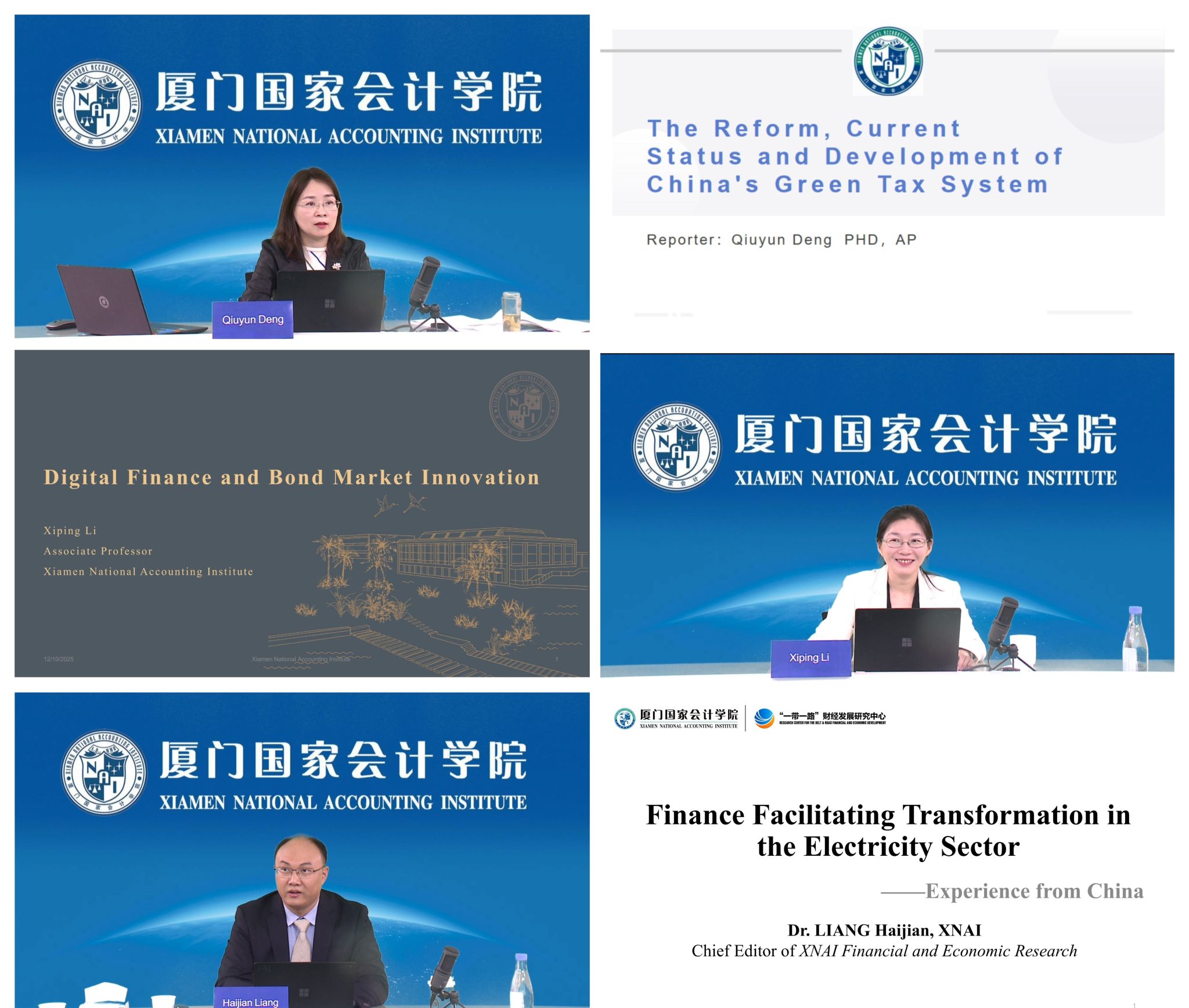 学院教研中心副教授邓秋云、副教授李浠平及“一带一路”财经发展研究中心讲师梁海剑分别围绕“中国绿色税制改革、现状与发展”“数字金融与债券市场创新”“金融赋能电力行业转型”进行专题授课,分享中国发挥财政金融工具作用、推动绿色发展和数字化转型的有益经验。