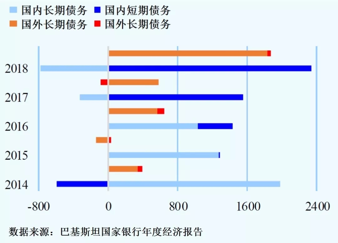 图 3. 2014-2018年巴基斯坦新增公共债务结构