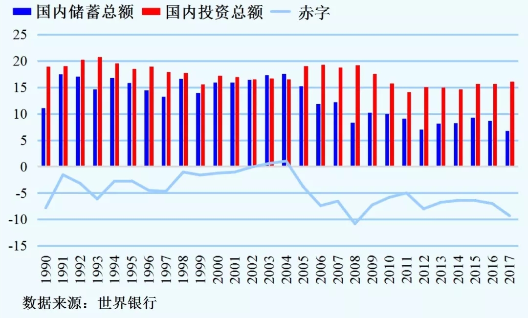 图 14. 1990-2017年巴基斯坦投资-储蓄缺口(%)