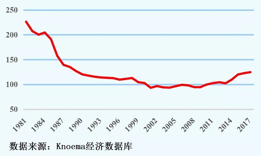 图 13. 1981-2017年巴基斯坦实际有效汇率指数