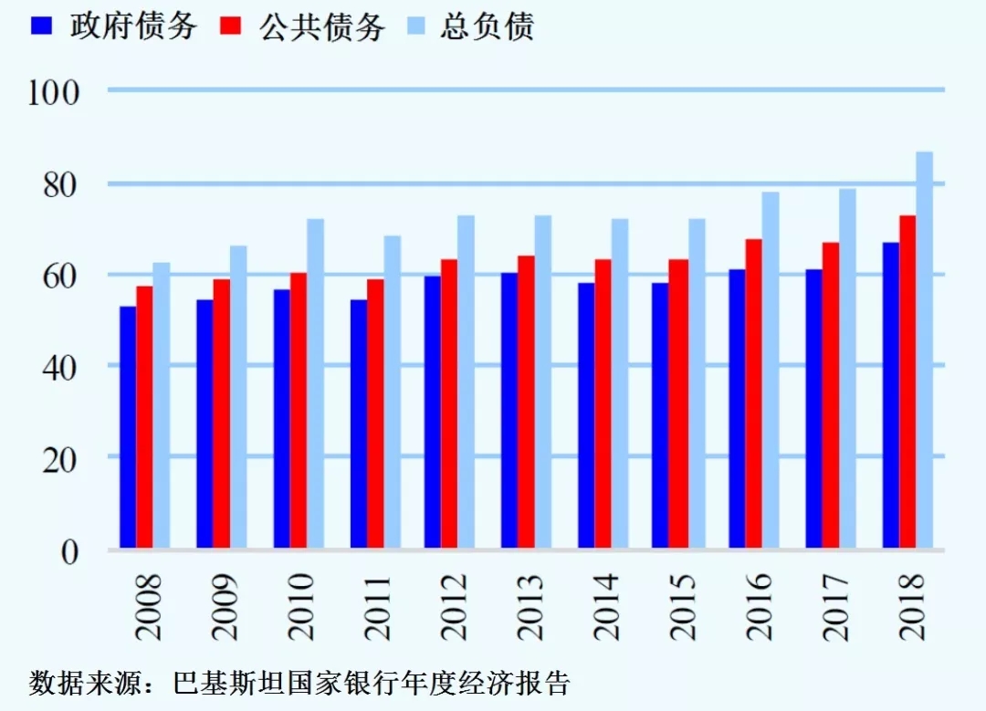 (注:公共债务=政府债务+政府担保的企业债务;总负债=公共债务+国外机构在巴基斯坦银行体系中的存款)