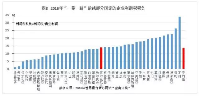 从图7描述出的情况看,卡塔尔、科威特、马其顿和巴林等国家的企业总体税收负担最轻,不到20%,其原因与这些国家的税制结构简单且稳定、税种较少、政府给予企业较多税收优惠政策以及税率较低等因素具有很大的关联性。此外,这些国家政府官员还比较注重吸引外商投资,国家政治局势也相对稳定。