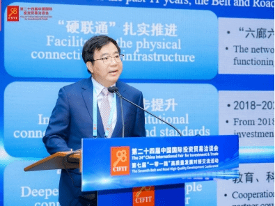 9月9日上午,第七届“一带一路”高质量发展对接交流活动在厦门国际会议展览中心举行。本次活动旨在贯彻落实党的二十届三中全会精神,以“完善推进高质量共建‘一带一路’机制”为主题展开交流研讨。作为第二十四届中国国际投资贸易洽谈会的重要活动之一,本次对接交流活动由中国国际经济合作学会和厦门国家会计学院共同主办,由“一带一路”财经能力建设平台协办。