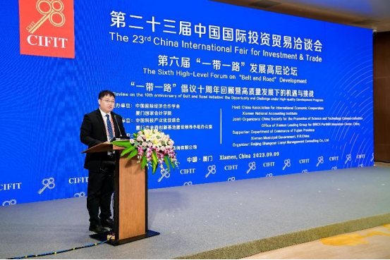 9月9日上午,第六届“一带一路”发展高层论坛在厦门成功举办。本届论坛为第二十三届中国国际投资贸易洽谈会的重要论坛活动之一,由中国国际经济合作学会、厦门国家会计学院共同主办。论坛聚焦“‘一带一路’倡议十周年回顾暨高质量发展下的机遇与挑战”开展深入交流研讨,多位境内外政府官员、国际组织代表、专家学者、企业代表与会。本次论坛形式内容丰富多彩,包括主办方致辞、主旨演讲、白皮书发布和圆桌讨论四个环节。本次论坛的观众包含六十位来自二十多个“一带一路”国家的政府官员。