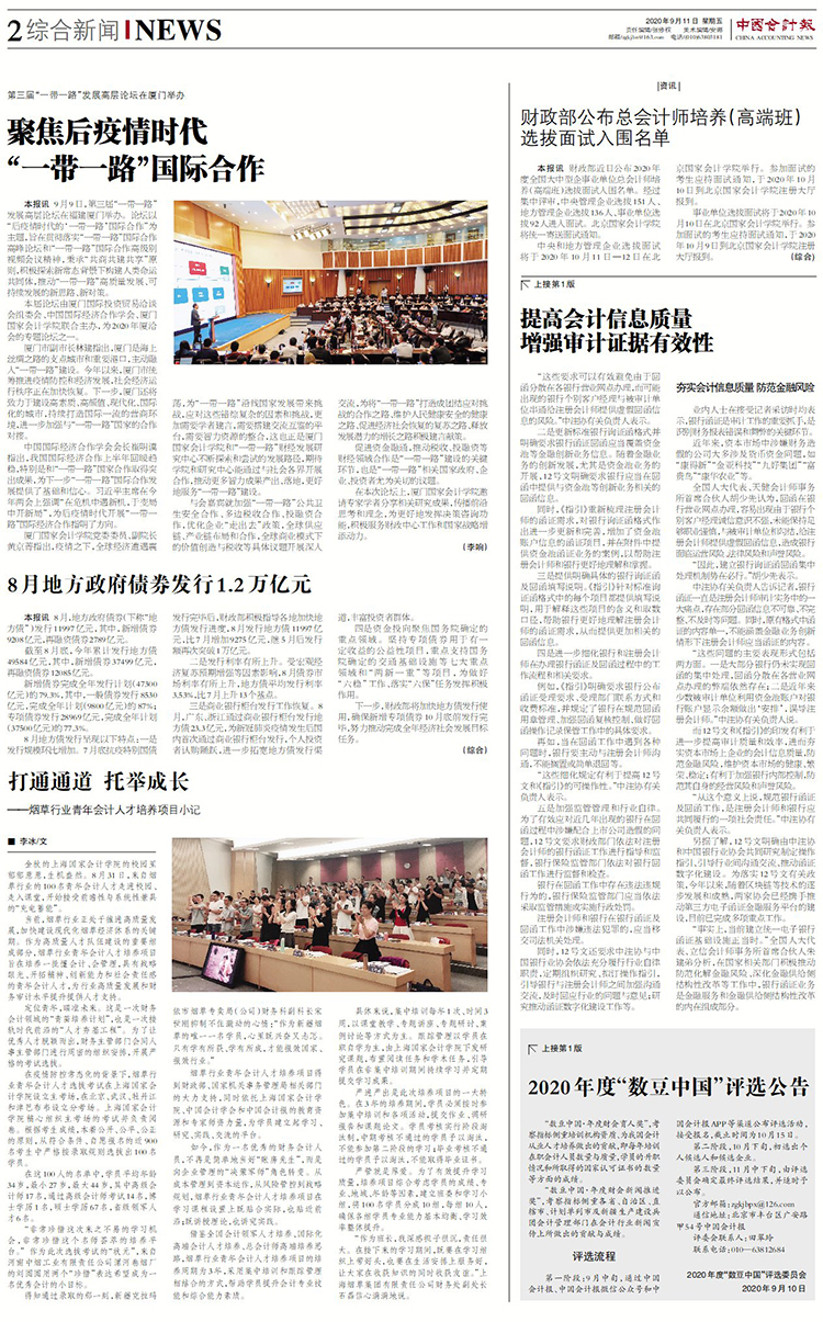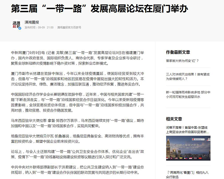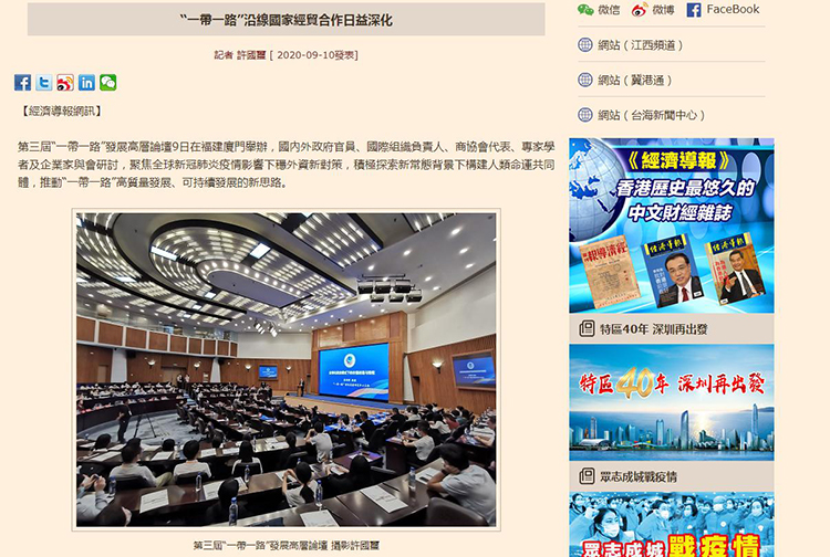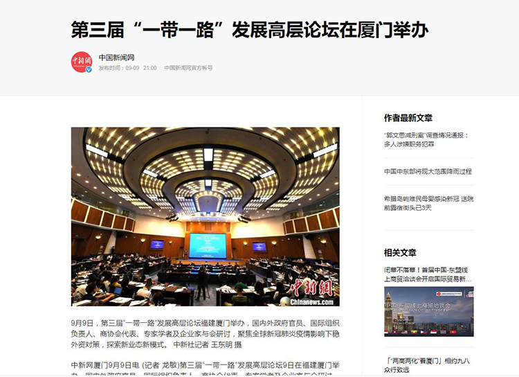 9月9日,我院携手厦门国际投资贸易洽谈会组委会、中国国际经济合作学会联合主办的“一带一路”发展高层论坛在厦成功举办。省内外多家媒体对本次论坛高度关注,中新网、中国青年报、香港经济导报、中国会计报、《财务与会计》杂志、潇湘晨报、东南卫视、厦门卫视、厦门日报、海西晨报等多家主流媒体纷纷报道和转载了这一盛况,进一步扩大了本次论坛的影响力。