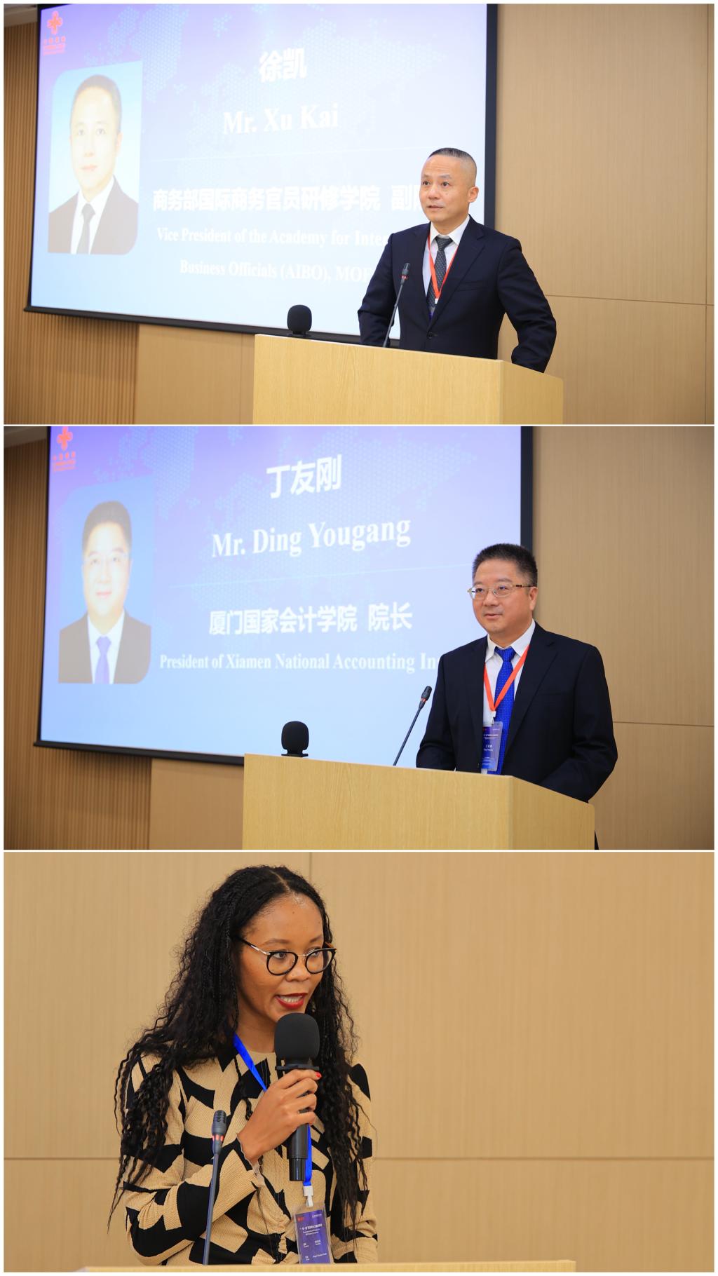 商务部国际商务官员研修学院副院长徐凯及厦门国家会计学院党委副书记、院长丁友刚祝贺全体学员圆满完成研修计划。丁友刚勉励全体学员成为绿色金融的传播者、实践者和推动者,将中国经验与本国实际相结合,共同助力全球绿色转型。徐凯指出,面对全球发展挑战,各国应坚持开放协作、增强系统韧性,最大限度凝聚合作共识、实现协同发展。