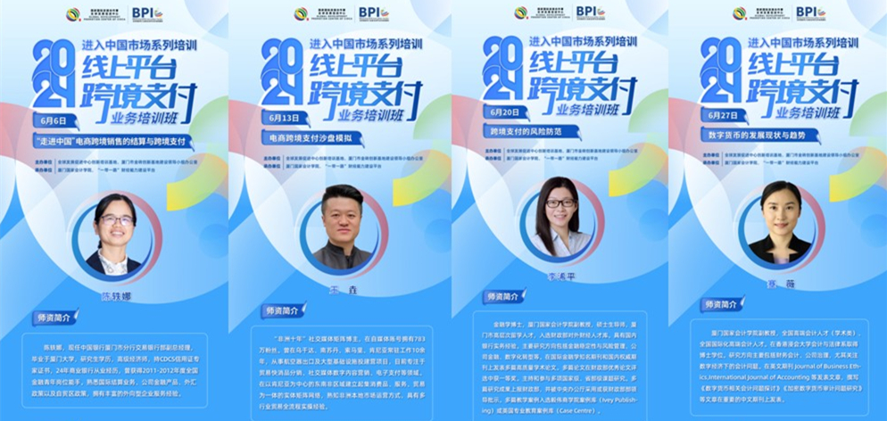 2024年6月,由全球发展促进中心创新培训基地、厦门市金砖创新基地建设领导小组办公室(以下简称“厦门市金砖办”)主办,厦门国家会计学院、“一带一路”财经能力建设平台承办的进入中国市场系列培训“线上平台跨境支付业务培训班”以线上方式举行。
